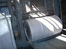 ドラム缶の中にチェーンを入れて、ドラム缶を回転させながら、油・サビを落とします。