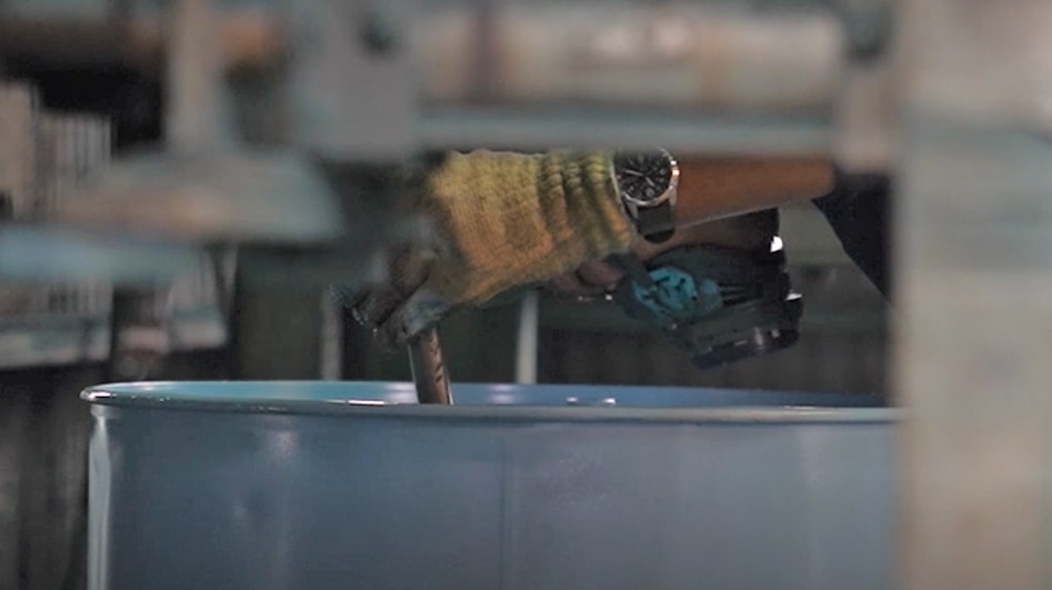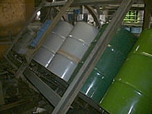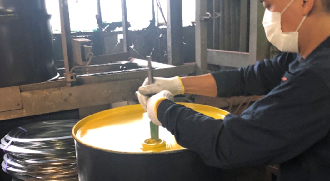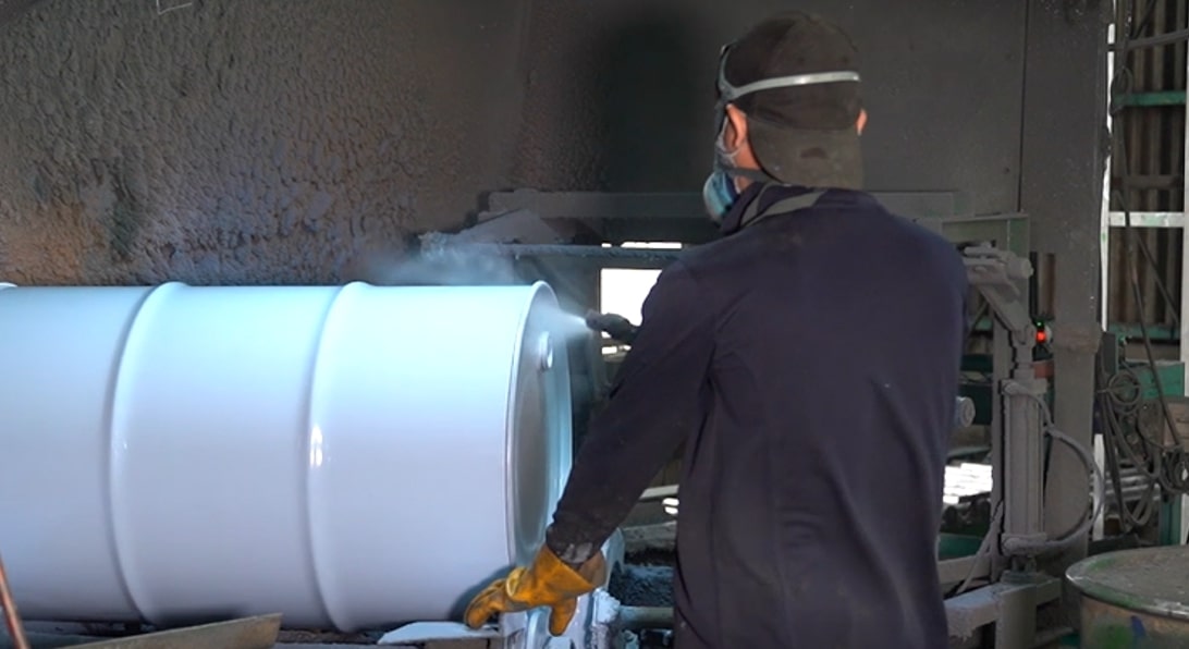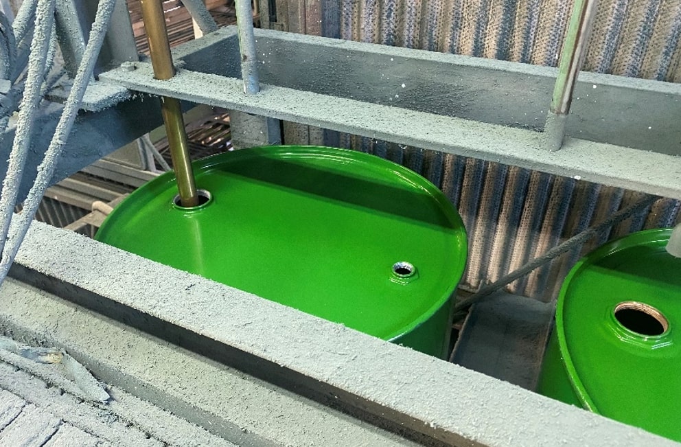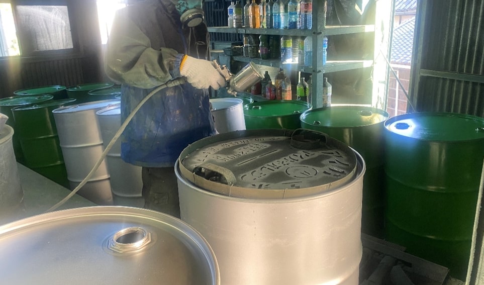 ドラム缶外部を、指定色に塗装します。その後、乾燥させます。