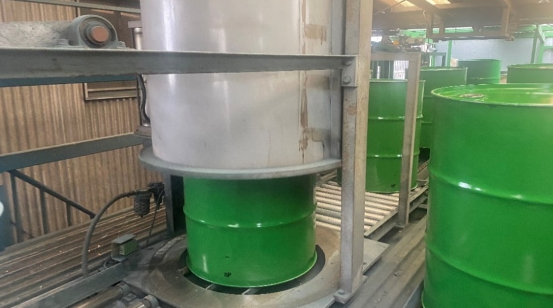 高熱の蒸気を注入してから、熱風とバキュームでドラム缶の内部を乾燥させます。